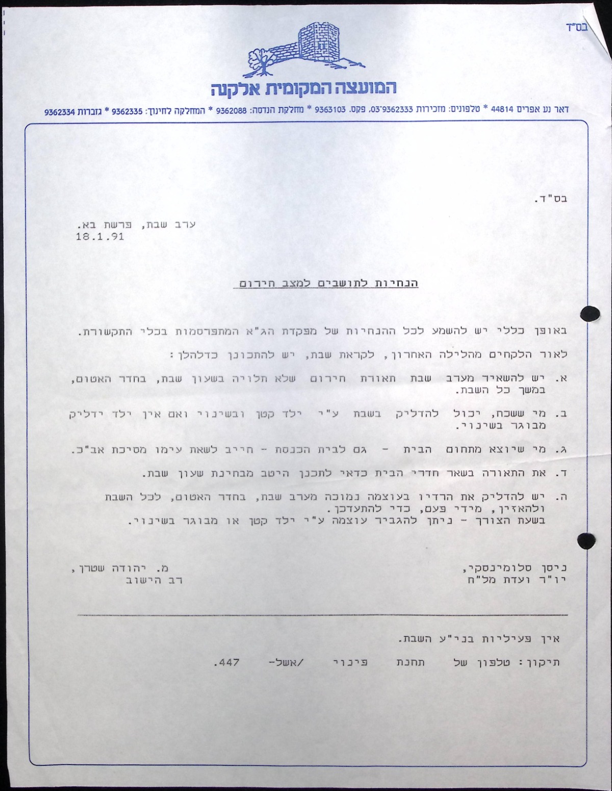 הנחיות מצב חירום (18/01/1991)