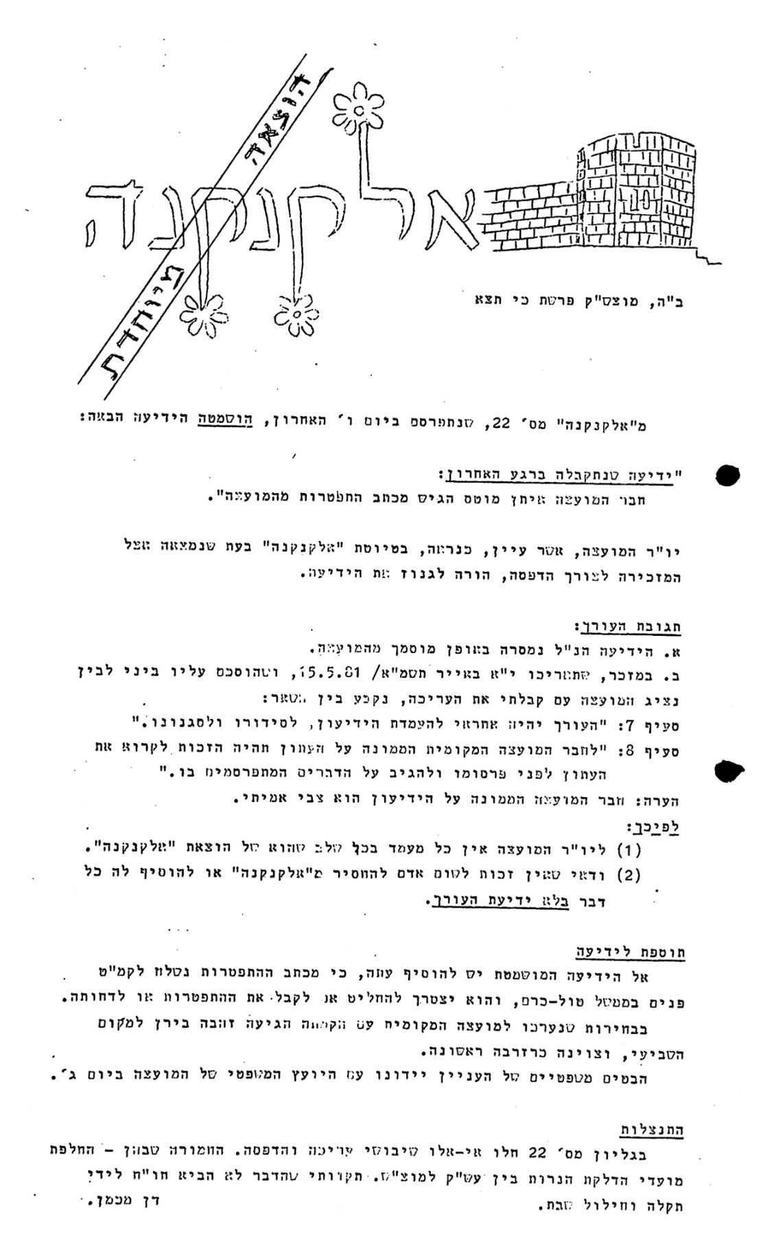 - אסתר אדמונית כעת מגויסת לכתיבת העלון.