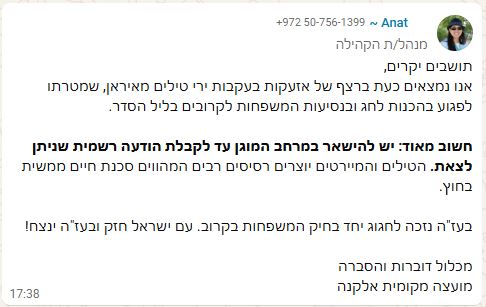 הודעת המועצה על חזרה מדורגת לשגרה בעקבות ההכרזה על הפסקת אש. (08/04/2026 בשעה 21:19)