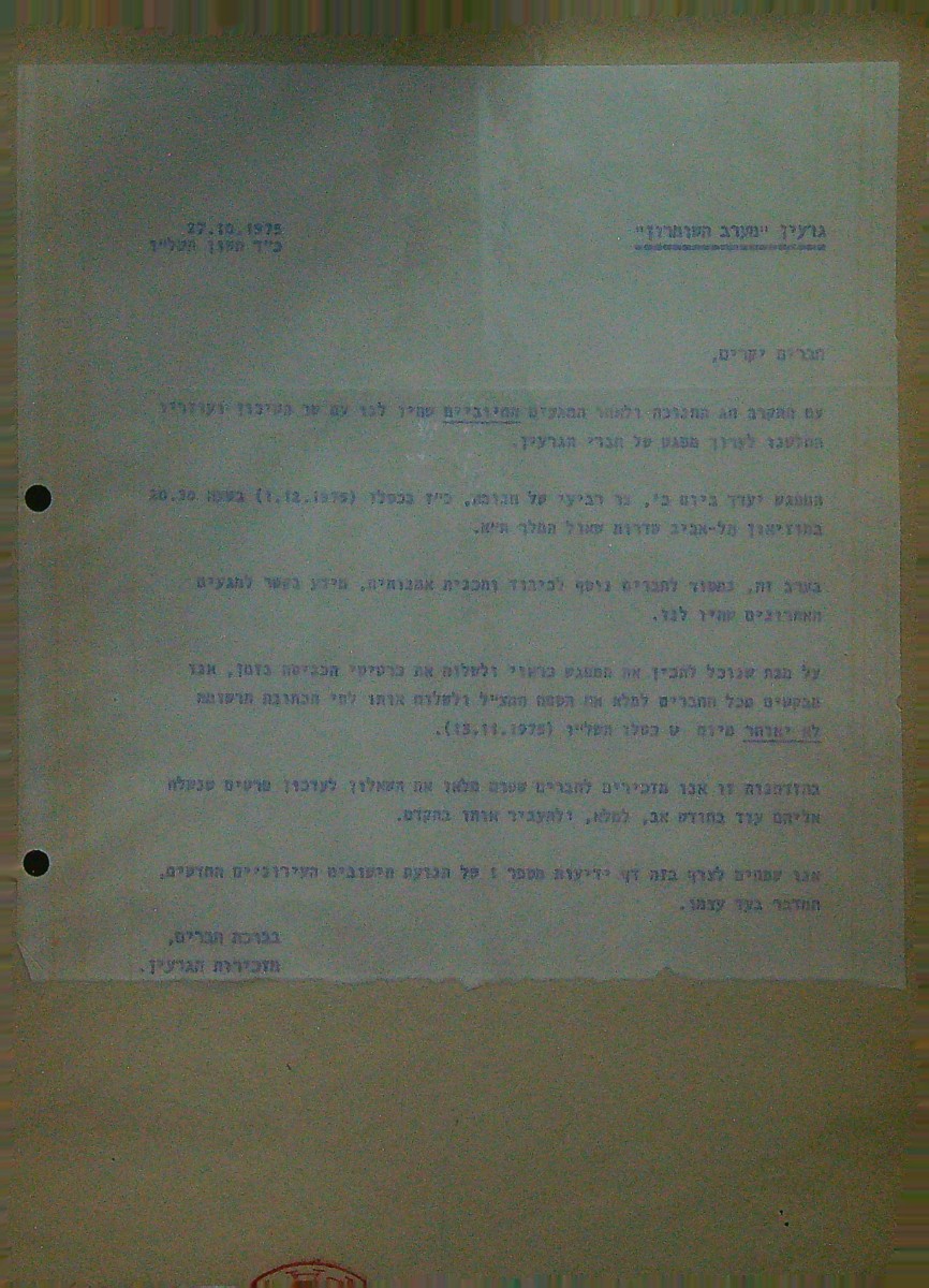 מסמכים היסטוריים - גרעין מערב השומרון (1977-1974)