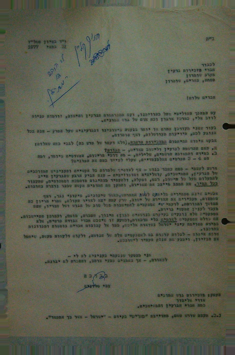 מסמכים היסטוריים - עליה לקרקע מאי 1977